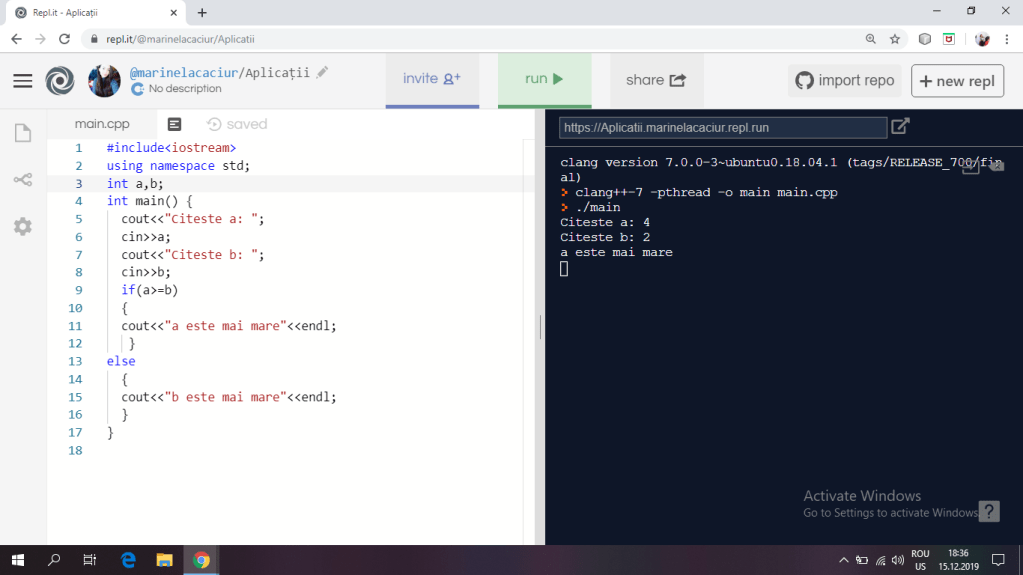 2. Se citesc de la tastatură două numere naturale a, b. Afișați pe ecran mesajul ,, a este mai mare” dacă a este mai mare decât b, altfel afișează ,, b este mai mare decât a”.