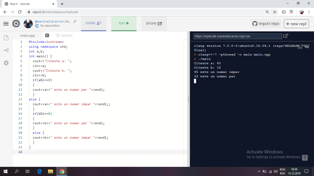 3. Se citesc de la tastatură două numere naturale a și b. Afișați paritatea acestora.