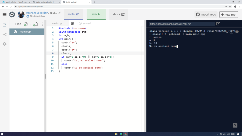 4. Se citesc de la tastaură două numere naturale. Verificați dacă acestea au același semn.